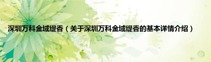 本文关于深圳万科金域缇香的基本详情介绍就讲解完毕,希望对大家有所帮助。
