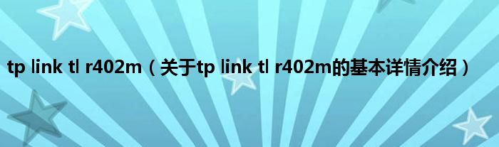 本文关于tp link tl r402m的基本详情介绍就讲解完毕,希望对大家有所帮助。