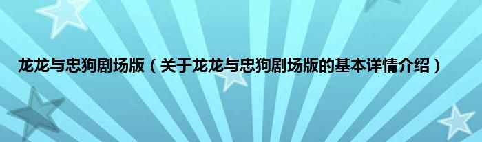 本文关于龙龙与忠狗剧场版的基本详情介绍就讲解完毕,希望对大家有所帮助。