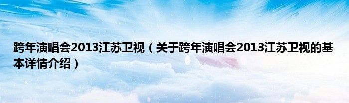 本文关于跨年演唱会2013江苏卫视的基本详情介绍就讲解完毕,希望对大家有所帮助。