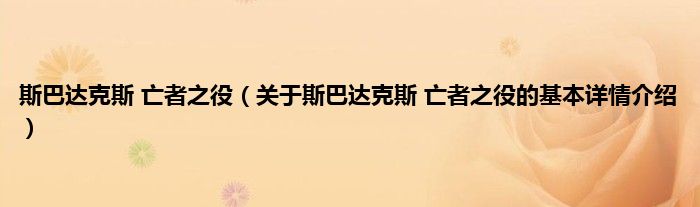 本文关于斯巴达克斯 亡者之役的基本详情介绍就讲解完毕,希望对大家有所帮助。