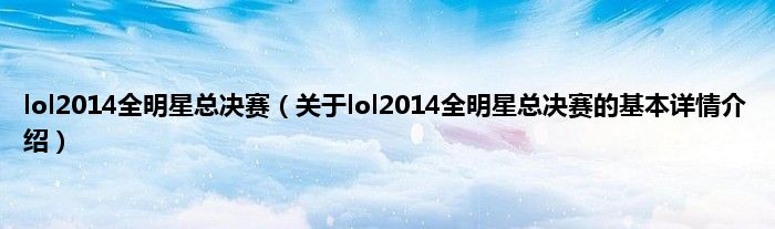 本文关于lol2014全明星总决赛的基本详情介绍就讲解完毕,希望对大家有所帮助。