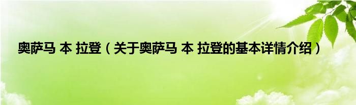 本文关于奥萨马 本 拉登的基本详情介绍就讲解完毕,希望对大家有所帮助。