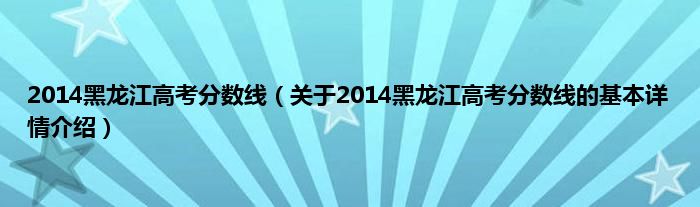 本文关于2014黑龙江高考分数线的基本详情介绍就讲解完毕,希望对大家有所帮助。