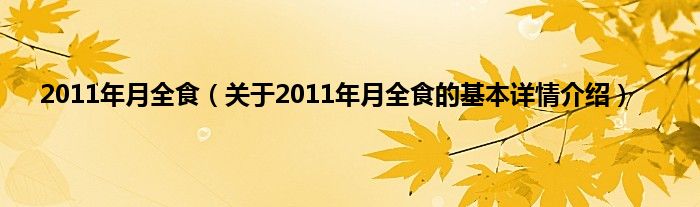 本文关于2011年月全食的基本详情介绍就讲解完毕,希望对大家有所帮助。