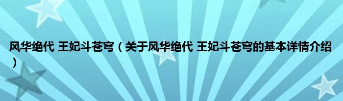 本文关于风华绝代 王妃斗苍穹的基本详情介绍就讲解完毕,希望对大家有所帮助。