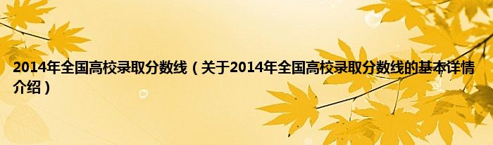 本文关于2014年全国高校录取分数线的基本详情介绍就讲解完毕,希望对大家有所帮助。