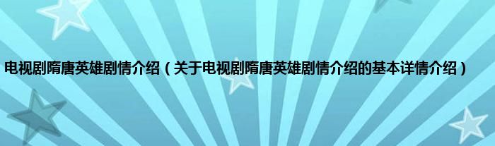本文关于电视剧隋唐英雄剧情介绍的基本详情介绍就讲解完毕,希望对大家有所帮助。