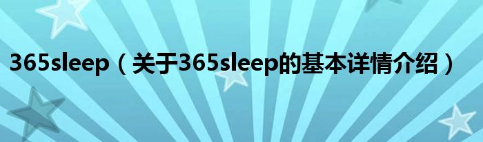 本文关于365sleep的基本详情介绍就讲解完毕,希望对大家有所帮助。