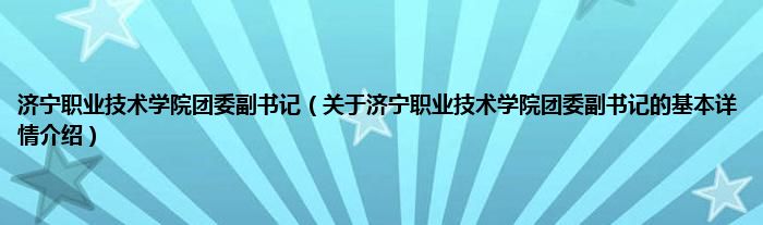 本文关于济宁职业技术学院团委副书记的基本详情介绍就讲解完毕,希望对大家有所帮助。