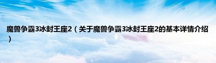 本文关于魔兽争霸3冰封王座2的基本详情介绍就讲解完毕,希望对大家有所帮助。