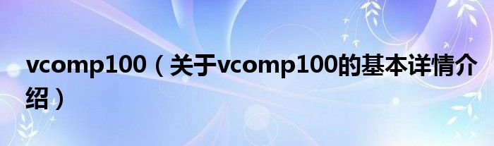 大家好我是小蝌蚪,vcomp100,关于vcomp100的基本详情介绍很多人还不知道,那么现在让我们一起来看看吧!