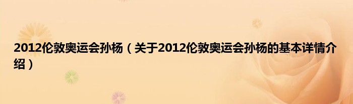 本文关于2012伦敦奥运会孙杨的基本详情介绍就讲解完毕,希望对大家有所帮助。