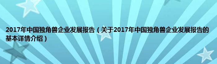 本文关于2017年中国独角兽企业发展报告的基本详情介绍就讲解完毕,希望对大家有所帮助。