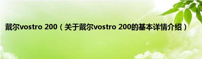 本文关于戴尔vostro 200的基本详情介绍就讲解完毕,希望对大家有所帮助。