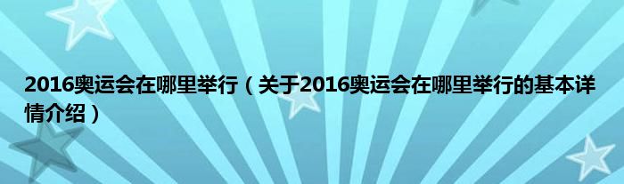 本文关于2016奥运会在哪里举行的基本详情介绍就讲解完毕,希望对大家有所帮助。