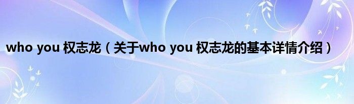 本文关于who you 权志龙的基本详情介绍就讲解完毕,希望对大家有所帮助。