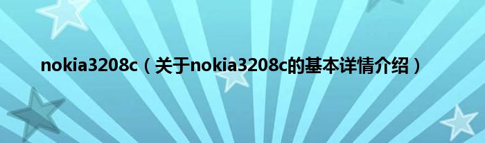 本文关于nokia3208c的基本详情介绍就讲解完毕,希望对大家有所帮助。