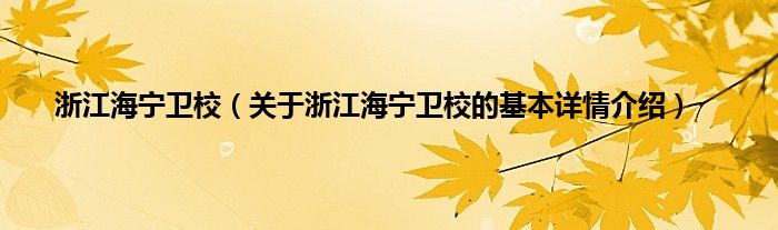 本文关于浙江海宁卫校的基本详情介绍就讲解完毕,希望对大家有所帮助。