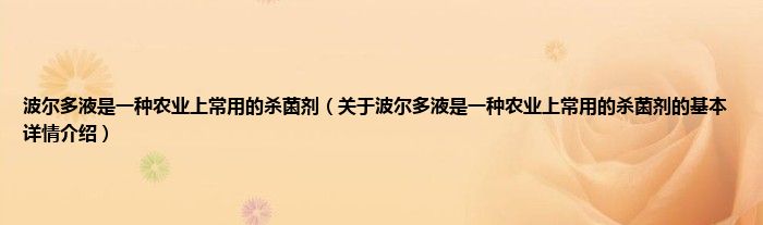 本文关于波尔多液是一种农业上常用的杀菌剂的基本详情介绍就讲解完毕,希望对大家有所帮助。
