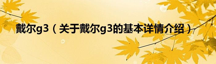 本文关于戴尔g3的基本详情介绍就讲解完毕,希望对大家有所帮助。