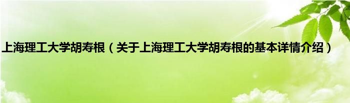 本文关于上海理工大学胡寿根的基本详情介绍就讲解完毕,希望对大家有所帮助。
