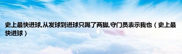 大家好,小问来为大家解答以上问题。史上最快进球,从发球到进球只踢了两脚,守门员表示我也,史上最快进球这个很多人还不知道,现在让我们一起来看看吧!