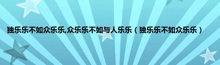 以上就是【独乐乐不如众乐乐,众乐乐不如与人乐乐,独乐乐不如众乐乐】相关内容。