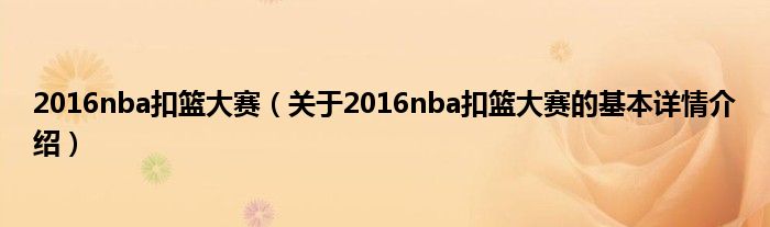 本文关于2016nba扣篮大赛的基本详情介绍就讲解完毕,希望对大家有所帮助。
