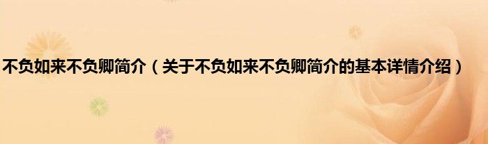 本文关于不负如来不负卿简介的基本详情介绍就讲解完毕,希望对大家有所帮助。