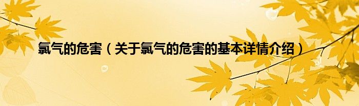本文关于氯气的危害的基本详情介绍就讲解完毕,希望对大家有所帮助。