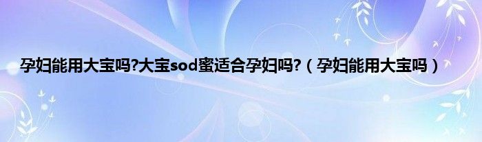 以上就是【孕妇能用大宝吗?大宝sod蜜适合孕妇吗?,孕妇能用大宝吗】相关内容。