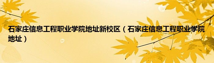 以上就是【石家庄信息工程职业学院地址新校区,石家庄信息工程职业学院地址】相关内容。