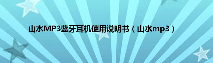 大家好,小问来为大家解答以上问题。山水MP3蓝牙耳机使用说明书,山水mp3这个很多人还不知道,现在让我们一起来看看吧!