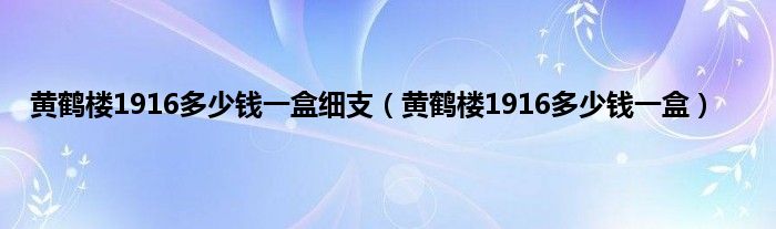 以上就是【黄鹤楼1916多少钱一盒细支,黄鹤楼1916多少钱一盒】相关内容。