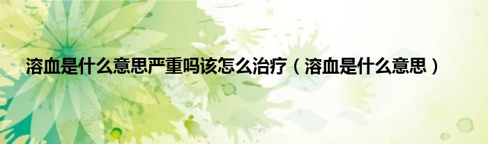 以上就是【溶血是什么意思严重吗该怎么治疗,溶血是什么意思】相关内容。