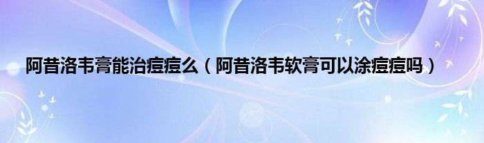 阿昔洛韦膏能治痘痘么(阿昔洛韦软膏可以涂痘痘吗)
