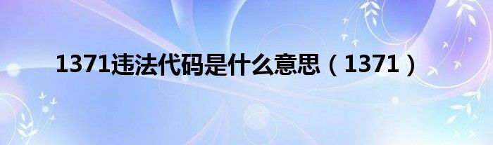 以上就是【1371违法代码是什么意思,1371】相关内容。