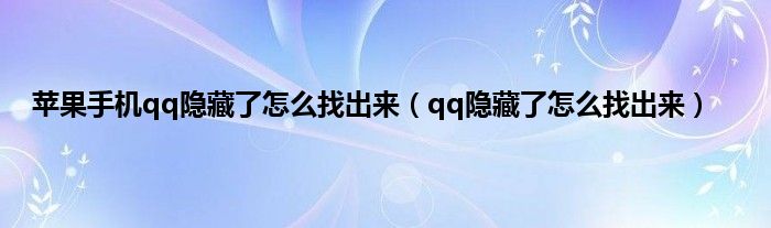 以上就是【苹果手机qq隐藏了怎么找出来,qq隐藏了怎么找出来】相关内容。