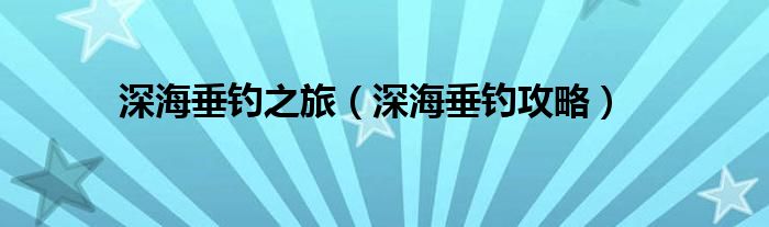 以上就是【深海垂钓之旅,深海垂钓攻略】相关内容。