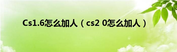 以上就是【Cs1.6怎么加人,cs2 0怎么加人】相关内容。