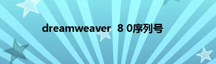 大家好,小问来为大家解答以上问题。dreamweaver 8 0序列号这个很多人还不知道,现在让我们一起来看看吧!