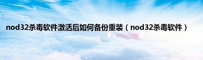 大家好,小问来为大家解答以上问题。nod32杀毒软件激活后如何备份重装,nod32杀毒软件这个很多人还不知道,现在让我们一起来看看吧!