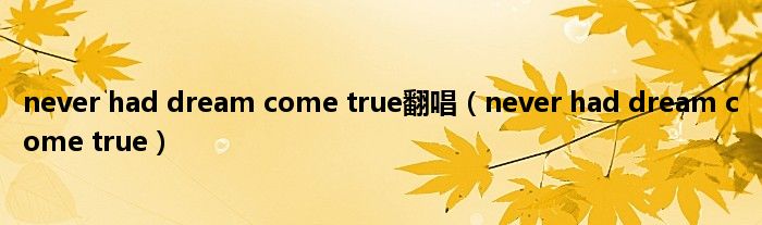 大家好,小问来为大家解答以上问题。never had dream come true翻唱,never had dream come true这个很多人还不知道,现在让我们一起来看看吧!