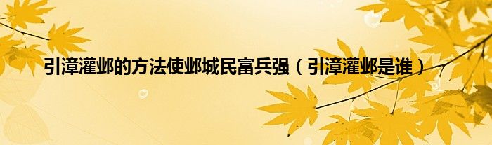 大家好,小问来为大家解答以上问题。引漳灌邺的方法使邺城民富兵强,引漳灌邺是谁这个很多人还不知道,现在让我们一起来看看吧!