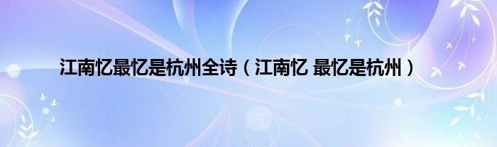 以上就是【江南忆最忆是杭州全诗,江南忆 最忆是杭州】相关内容。
