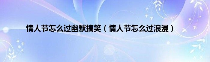 以上就是【情人节怎么过幽默搞笑,情人节怎么过浪漫】相关内容。