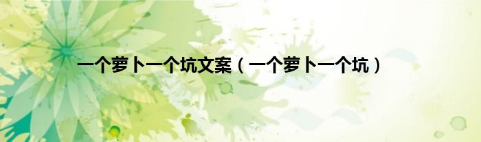 以上就是【一个萝卜一个坑文案,一个萝卜一个坑】相关内容。