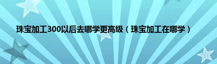 以上就是【珠宝加工300以后去哪学更高级,珠宝加工在哪学】相关内容。