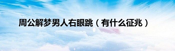 大家好,综合小编来为大家讲解下。周公解梦男人右眼跳,有什么征兆这个很多人还不知道,现在让我们一起来看看吧!